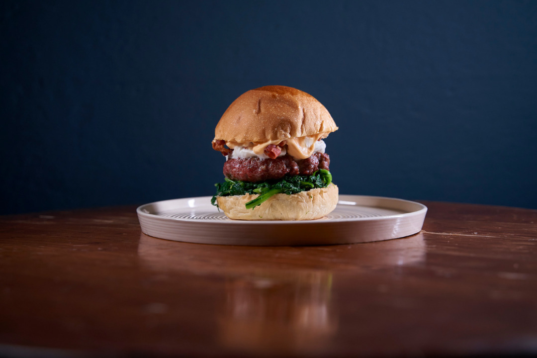 BURGER DI MANZO | MAYO SRIRACHA PICCANTE | CIME DI RAPA | BACON CROCCANTE | STRACCIATELLA DI BURRATA