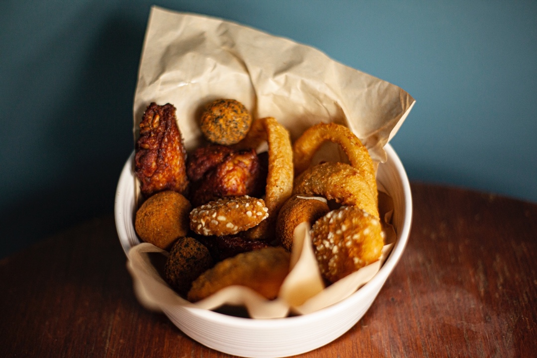 3 anelli, 3 tenders di pollo, 3 bocconcini, 3 mozzarelline al tartufo, 3 jalapenos